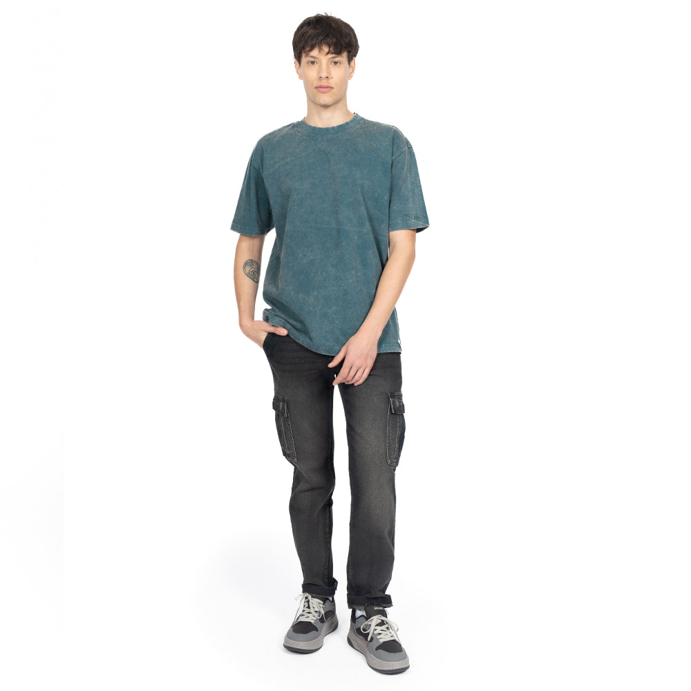 • 🔥 Beneficios clave: Bolsillos cargo laterales con solapa, diseño utilitario y lavado gris fácil de combinar (negro, blanco, verde, denim).