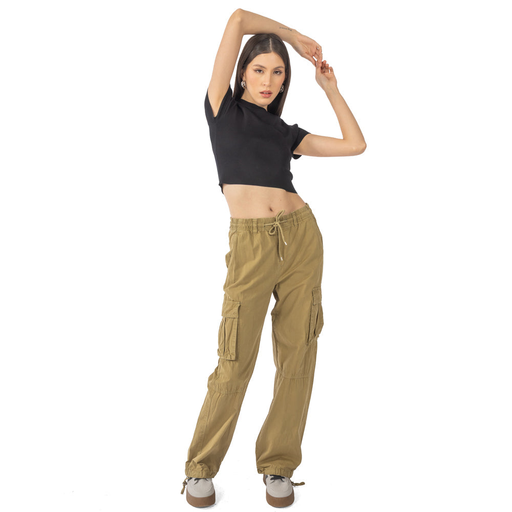 🔥 Jogger cargo con cintura ajustable: el balance perfecto entre vibe utilitaria y comodidad de diario. Color caqui, bolsillos cargo y fit relajado para armar looks sin pensarla.