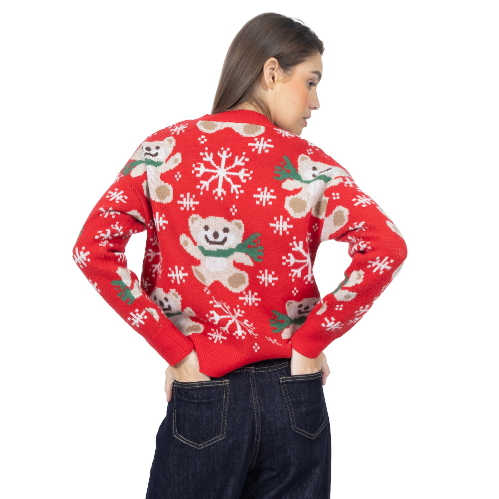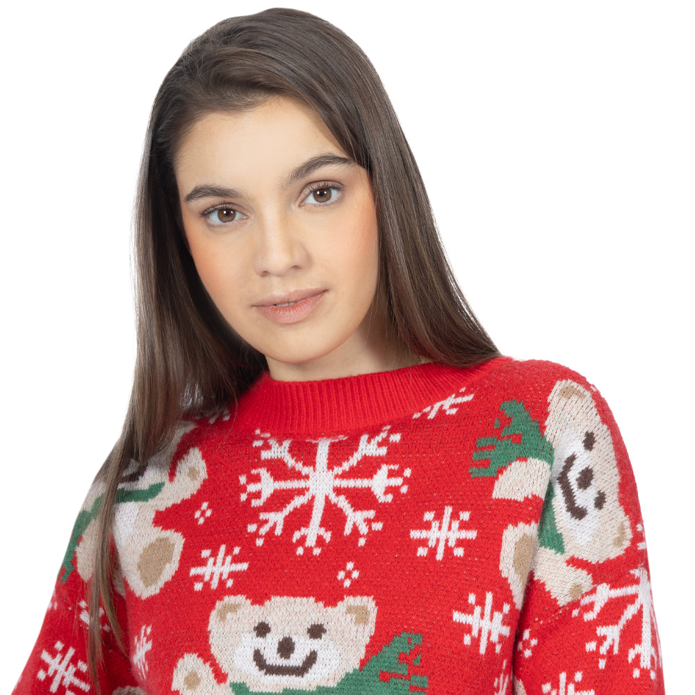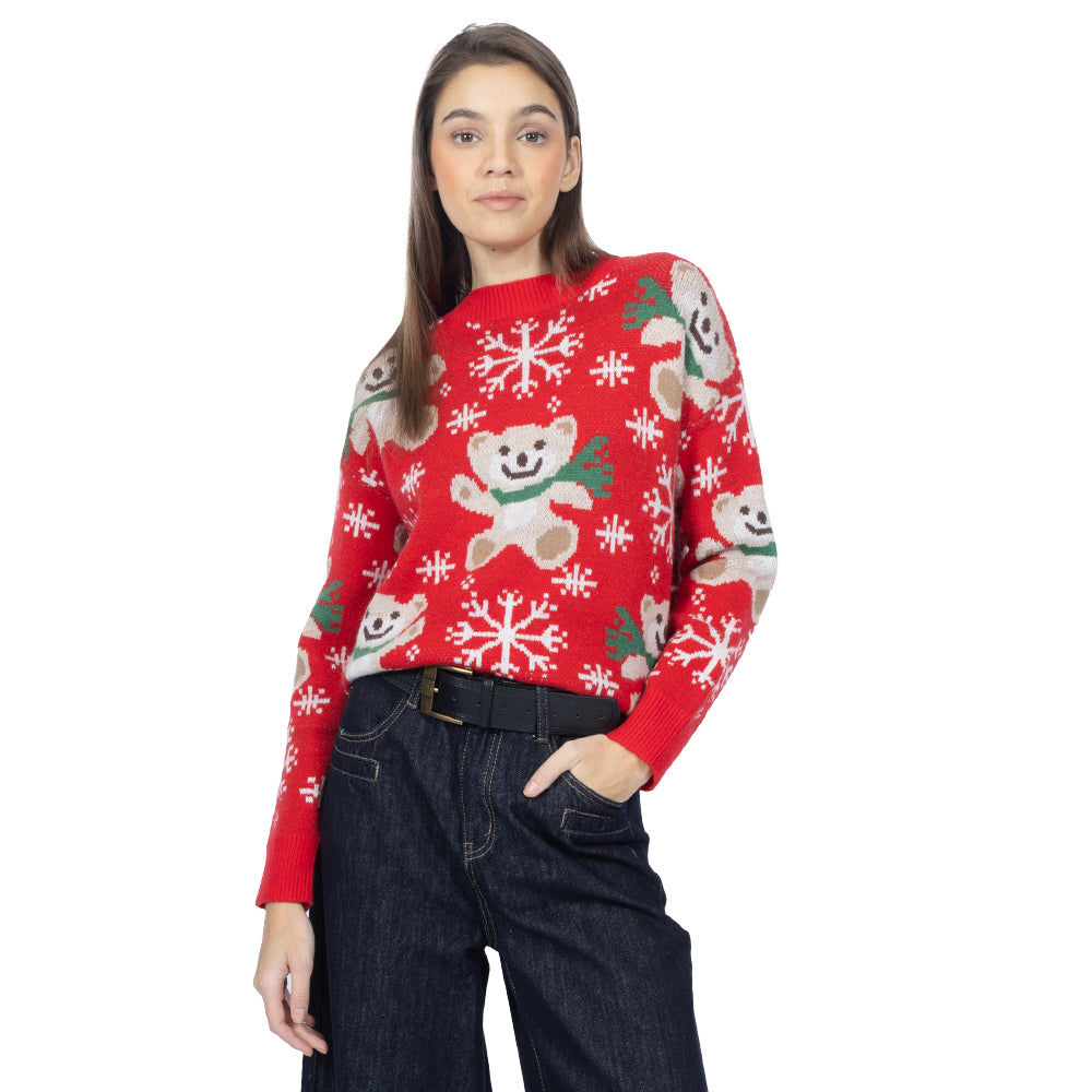 🔥 Beneficios: Suéter navideño con ositos y ajuste cómodo, perfecto para hacer layering, sentirse abrigada y destacar con un diseño tierno pero con onda.
