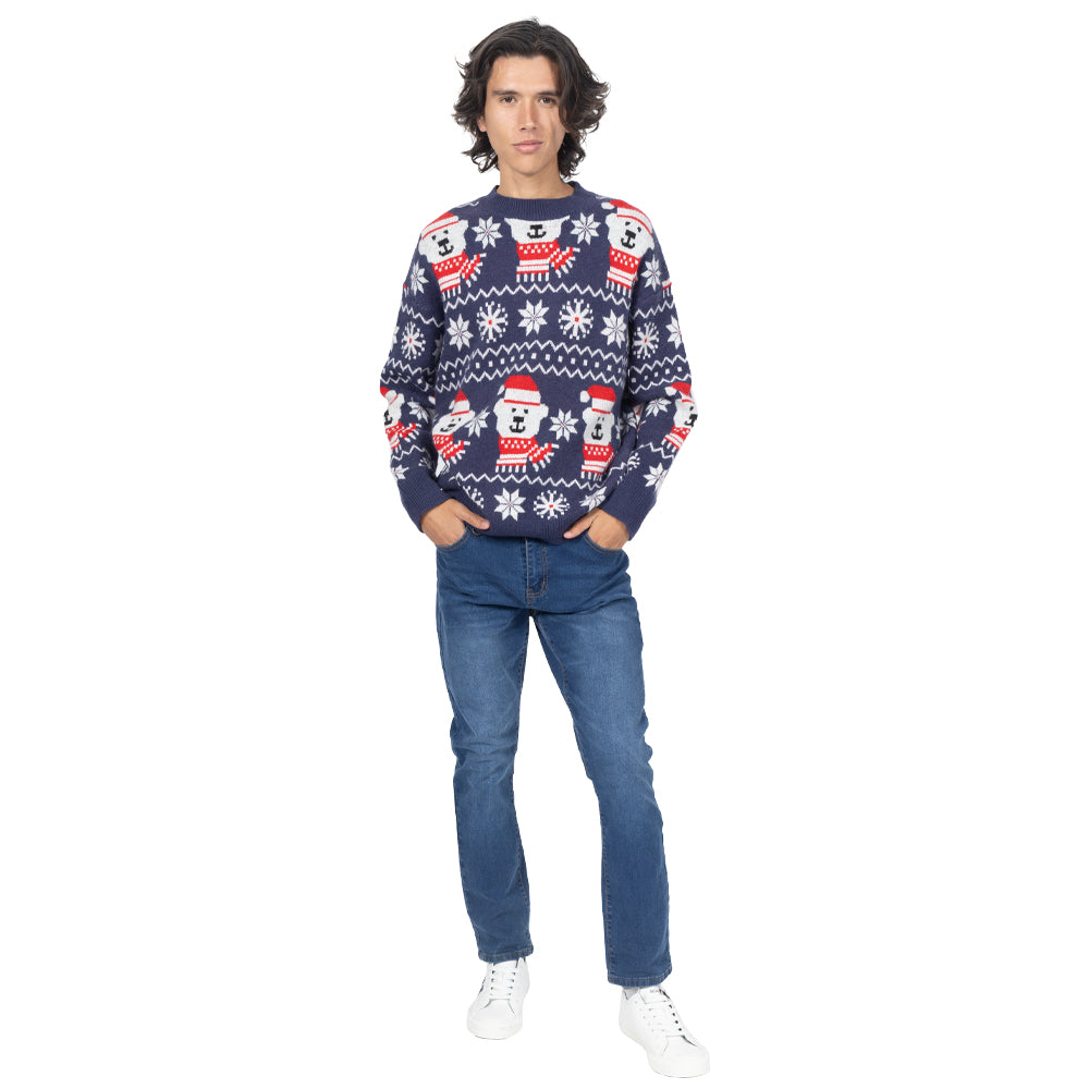 🔥 Beneficios: Suéter navideño con ajuste regular, diseño de osos y copos que destacan, fácil de combinar con jeans y tenis.
