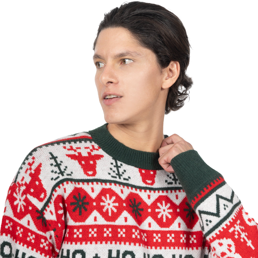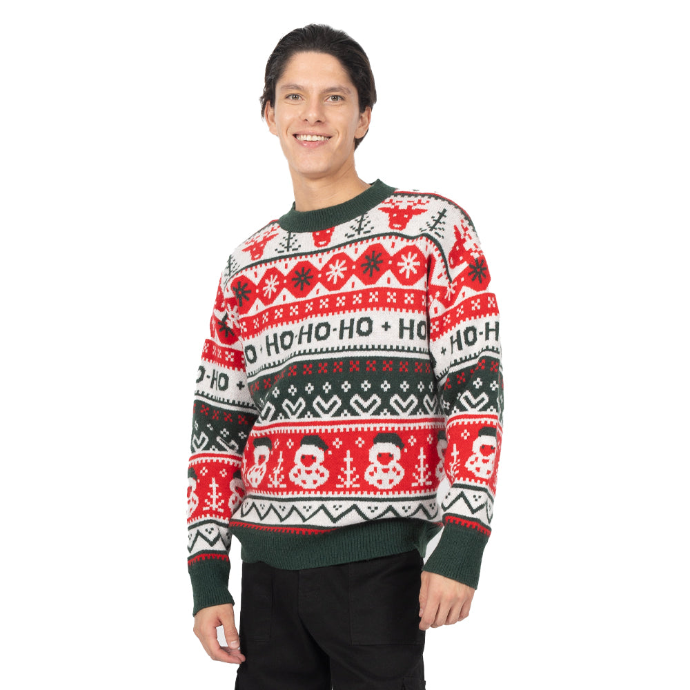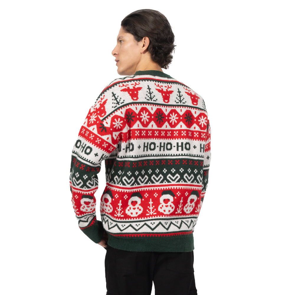 🔥 El suéter que prende la posada. El Suéter navideño Snowmans trae full vibe festiva con snowmans, renos y el clásico “HO HO HO” para que no pases desapercibido.