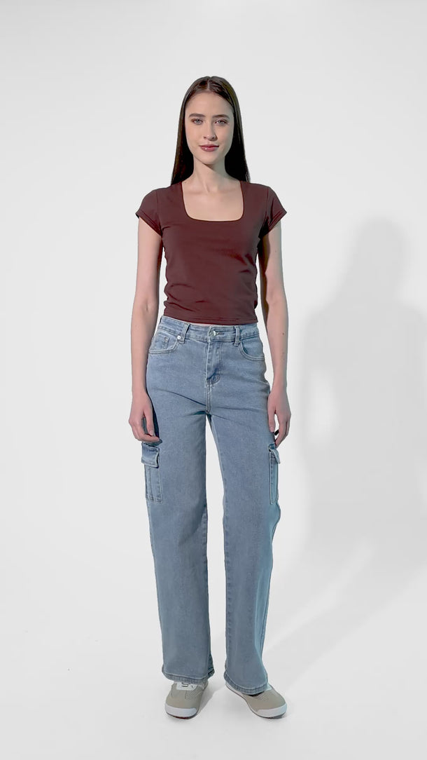 Playera Escote Cuadrado de Manga Corta