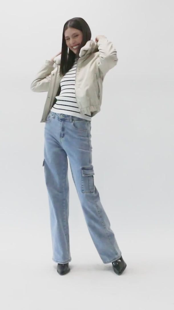 CHAMARRA CON CUELLO DE PELUCHE Y ELÁSTICO EN CINTURA PARA MUJER QUARRY