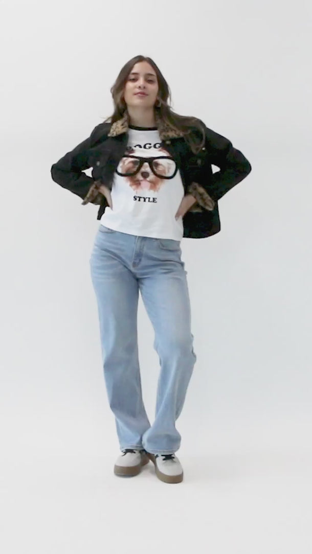 🔥 Denim con twist salvaje. Esta chamarra con cuello y puños animal print le da actitud instantánea a cualquier look.