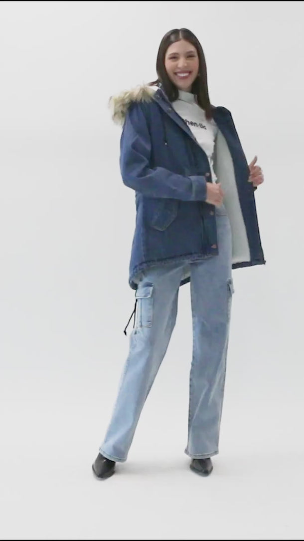 Chamarra Parka Denim con Capucha
