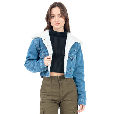 CHAMARRA DE MEZCLILLA CON CUELLO DE PELUCHE PARA MUJER QUARRY
