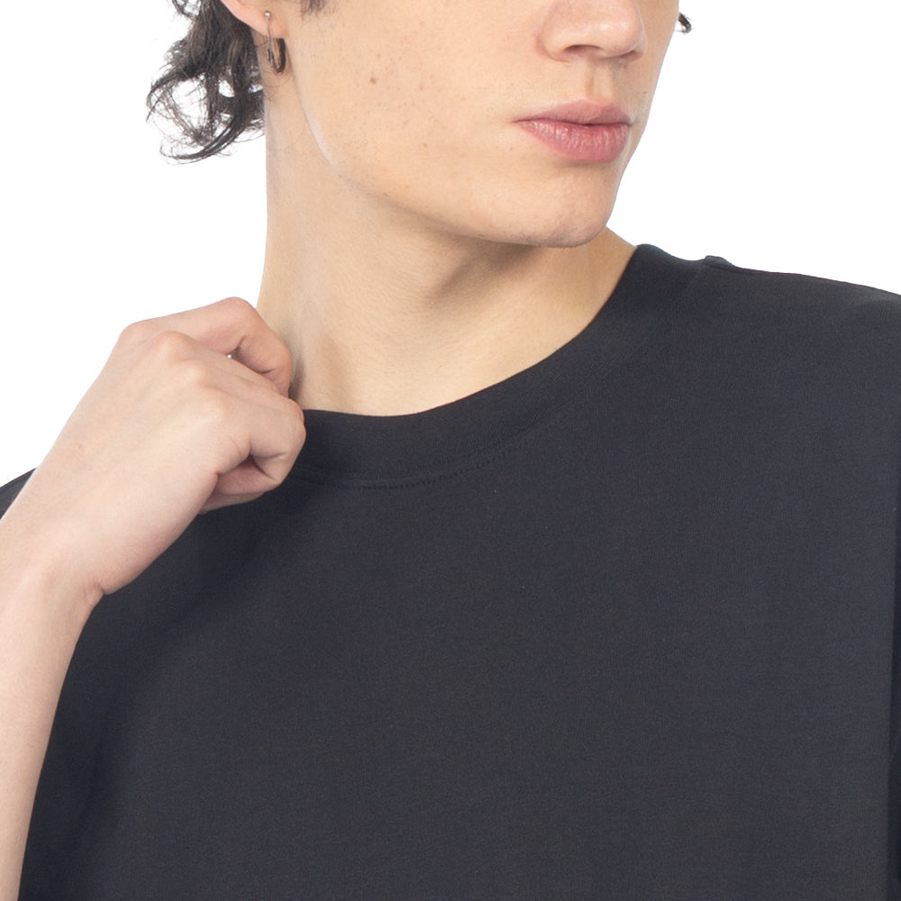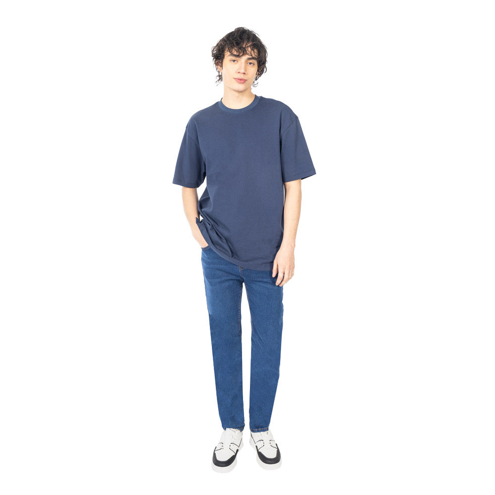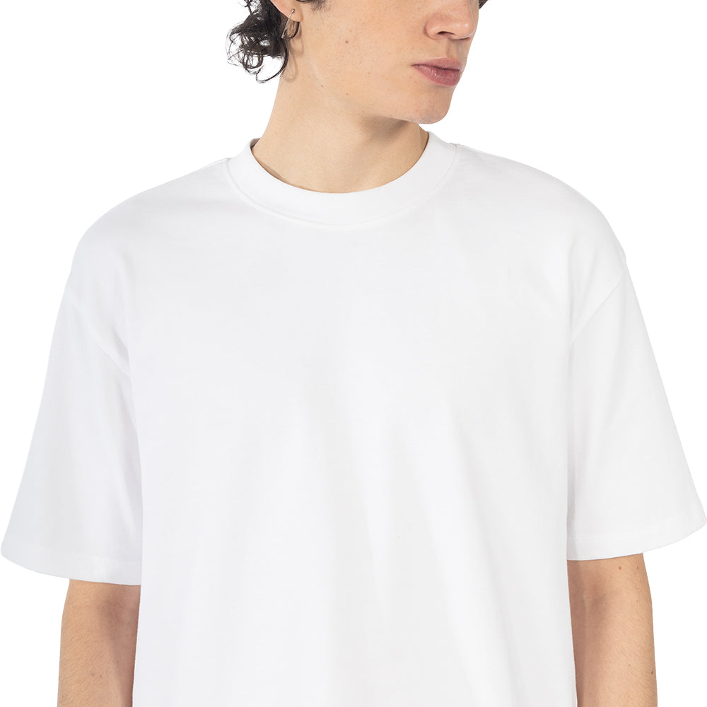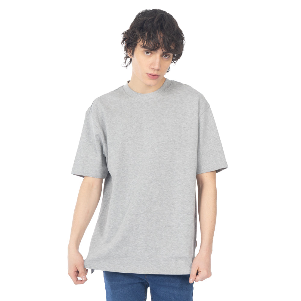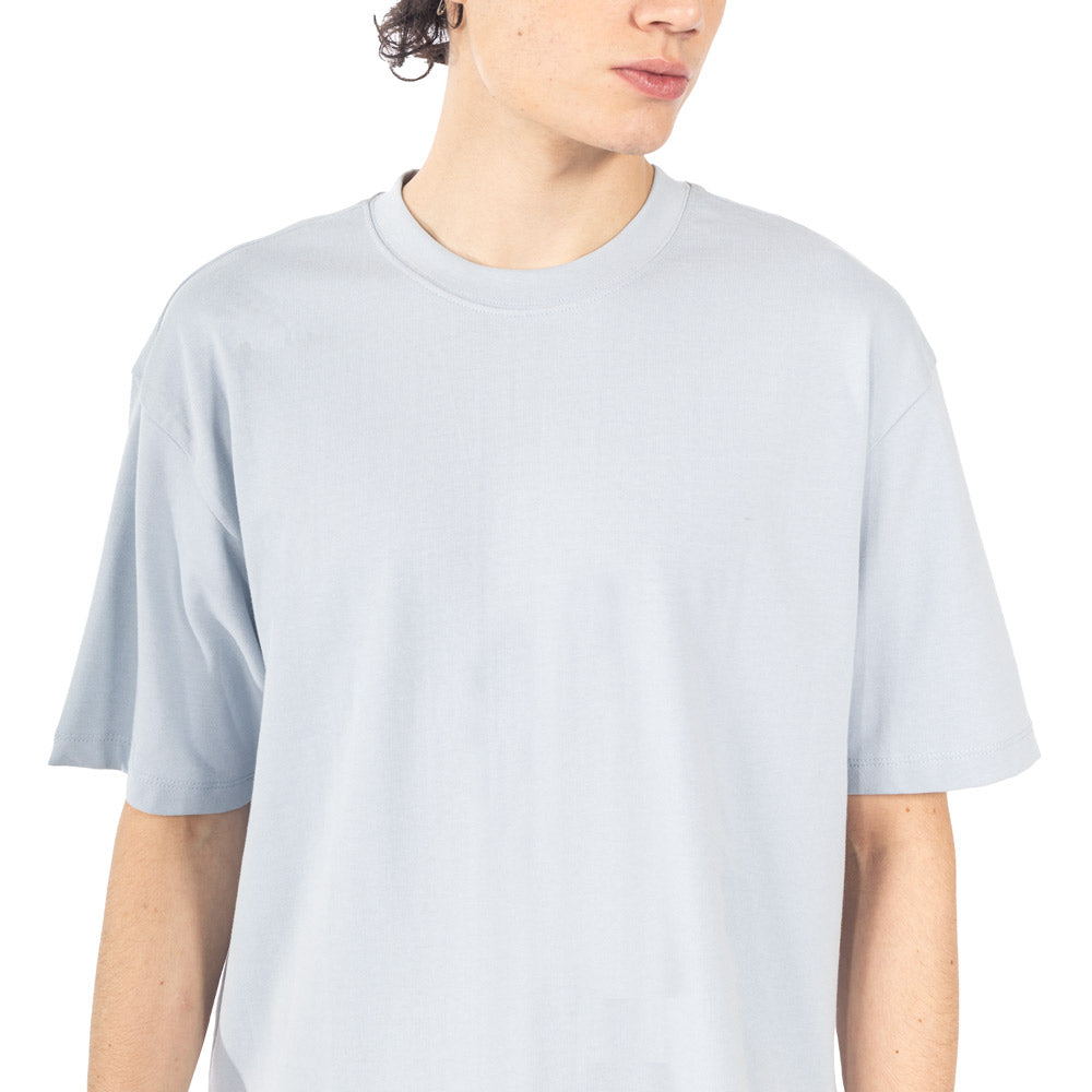 Playera box fit lisa de algodón con cuello redondo, pensada para un fit más cuadrado y corto que se vea más estructurado.