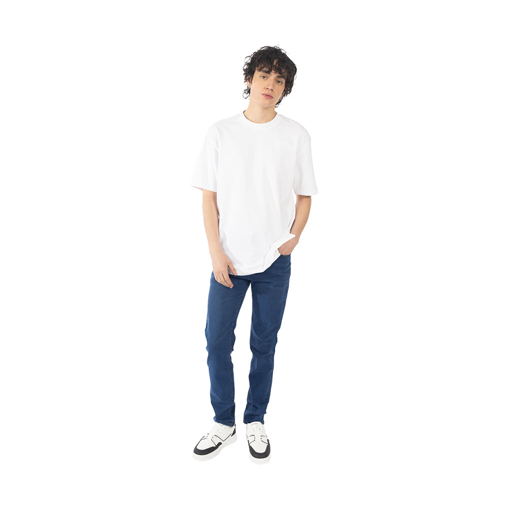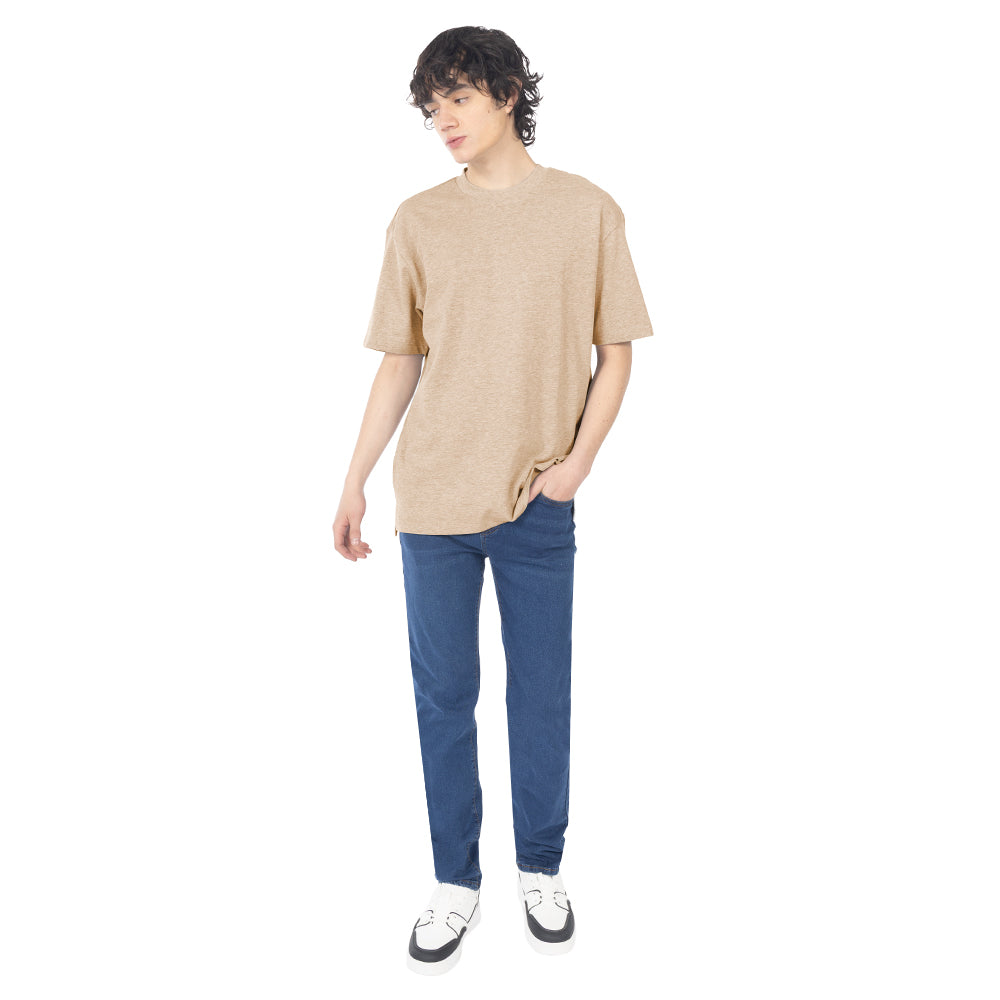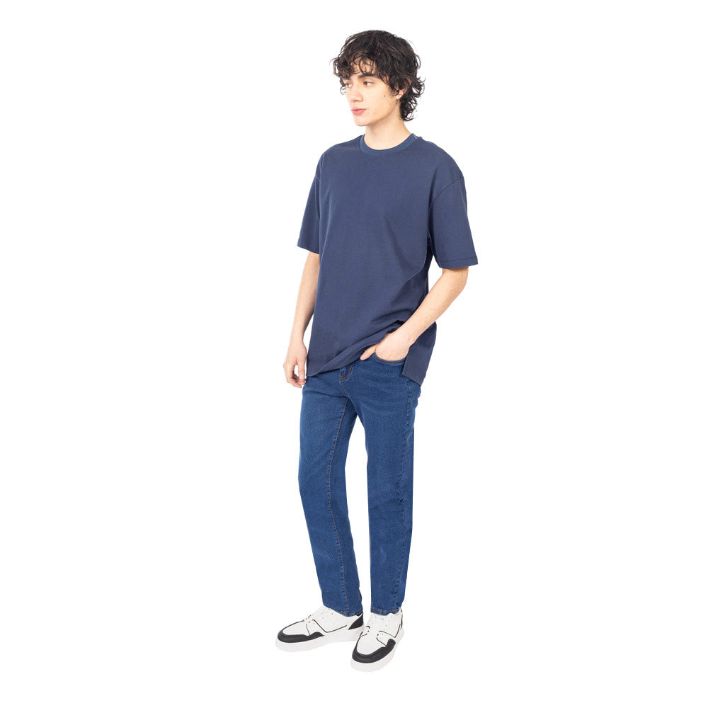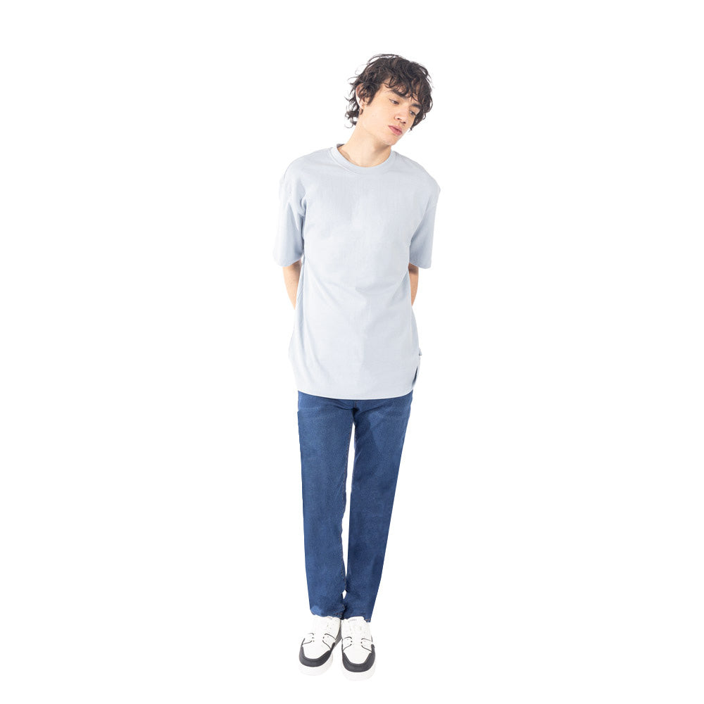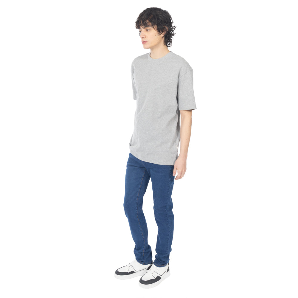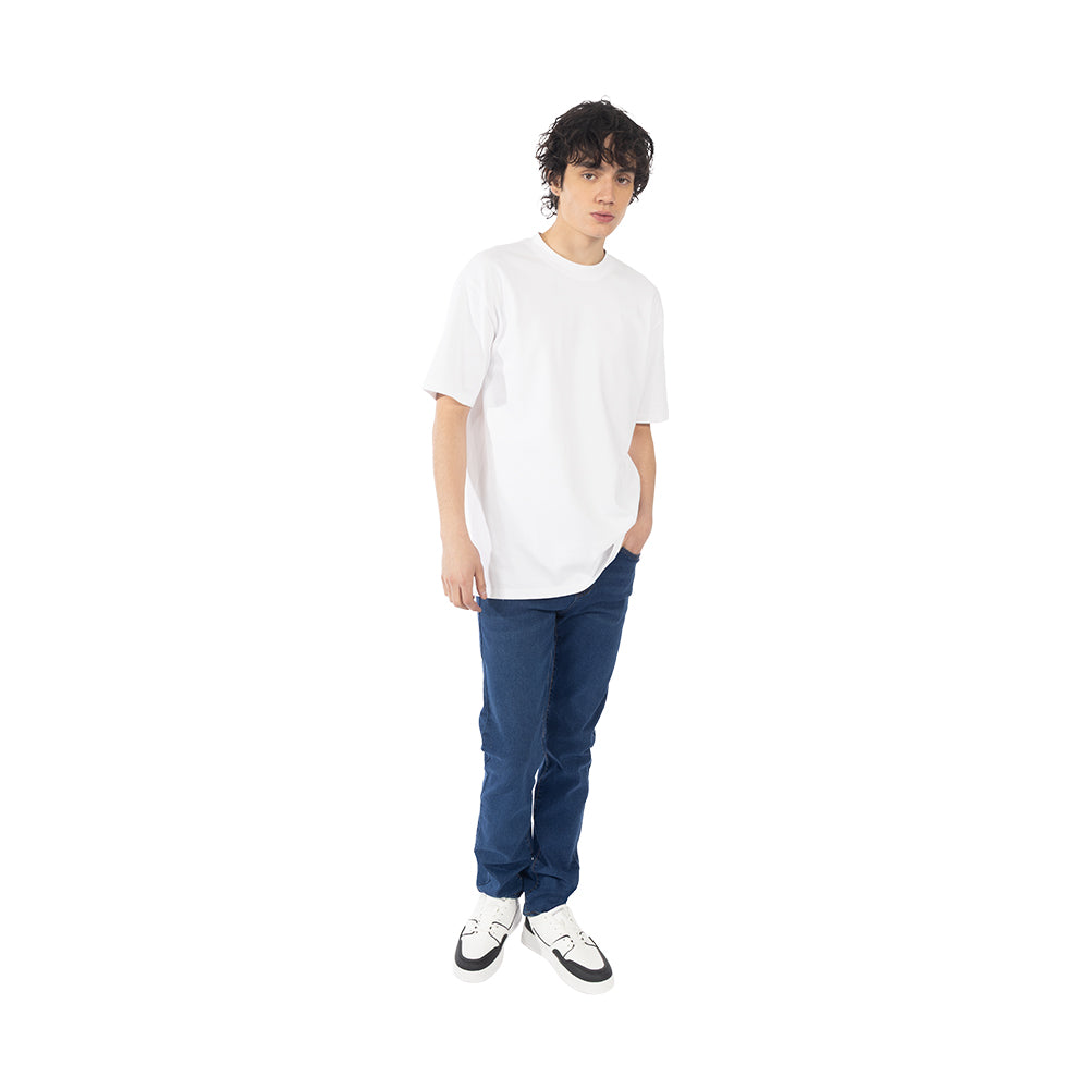 Playera box fit lisa de algodón con cuello redondo, pensada para un fit más cuadrado y corto que se vea más estructurado.