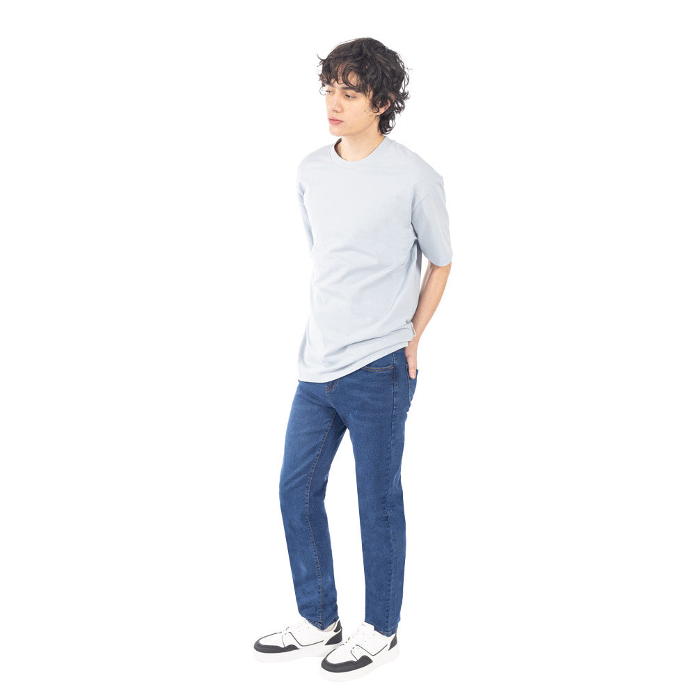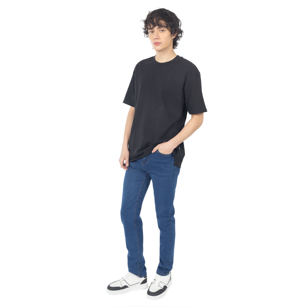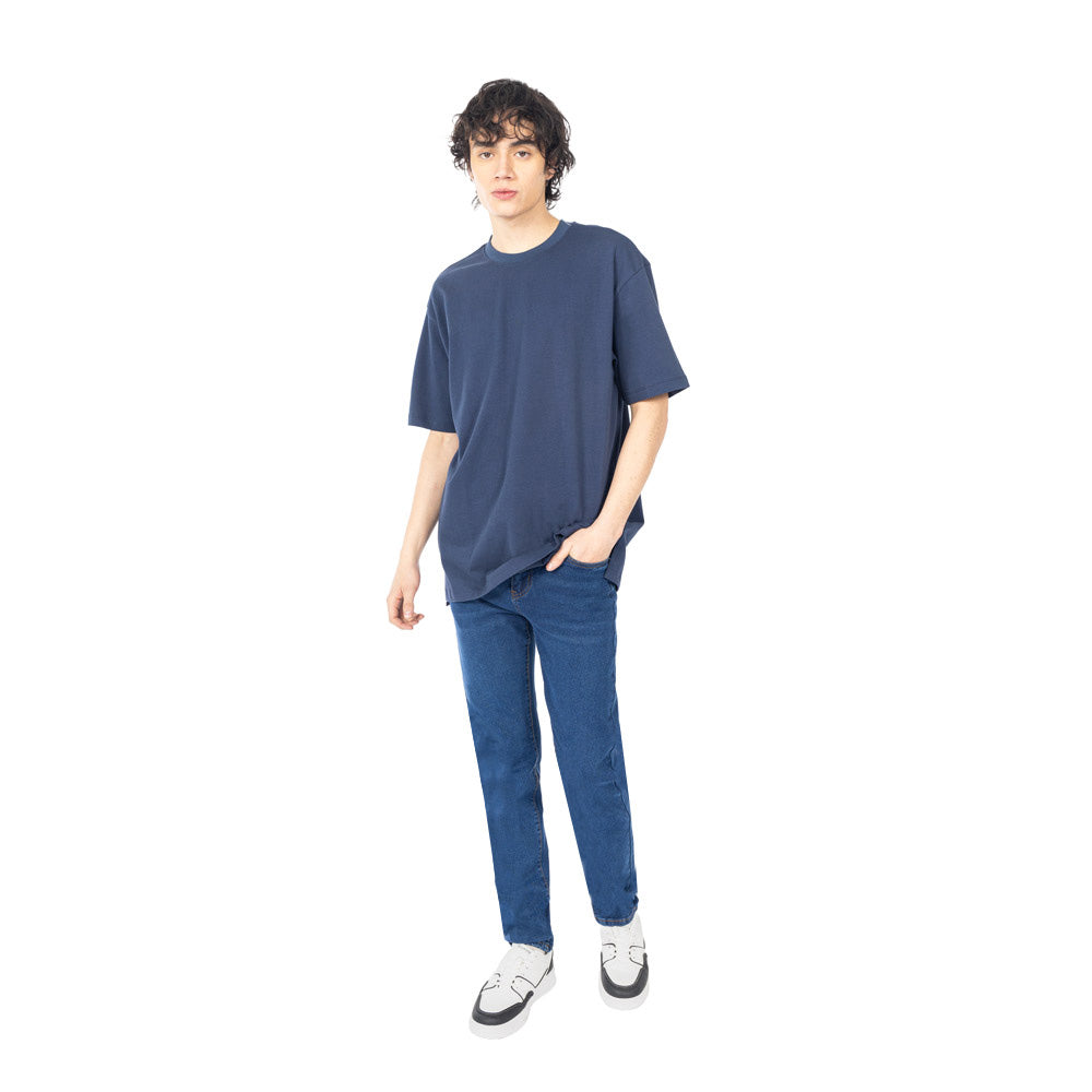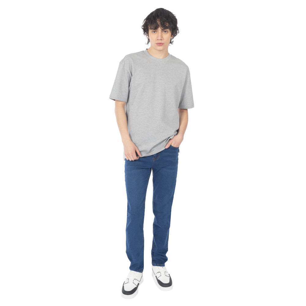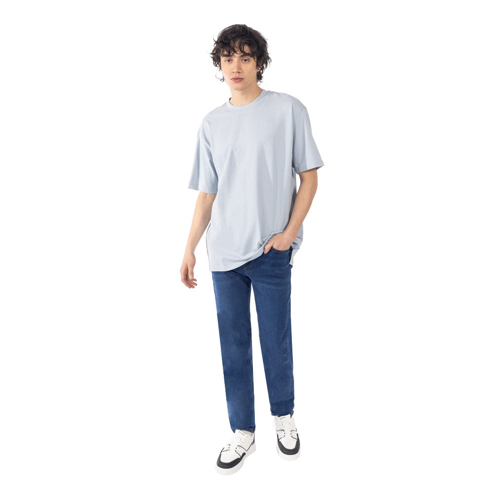 Playera box fit lisa de algodón con cuello redondo, pensada para un fit más cuadrado y corto que se vea más estructurado.