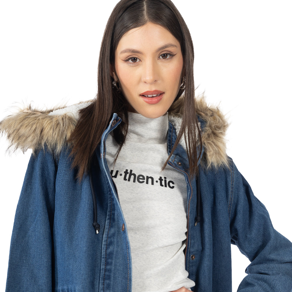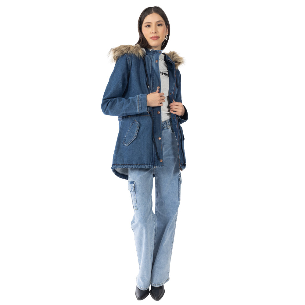 Chamarra Parka Denim con Capucha