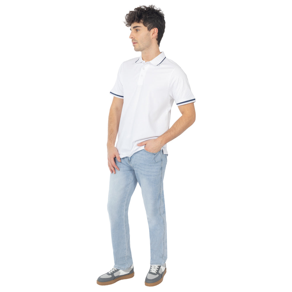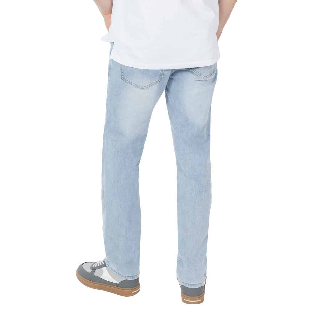 Jeans straight con jareta y cinco bolsillos, pensado para un fit recto que cae parejo y se siente más cómodo por la mezclilla comfort con stretch.