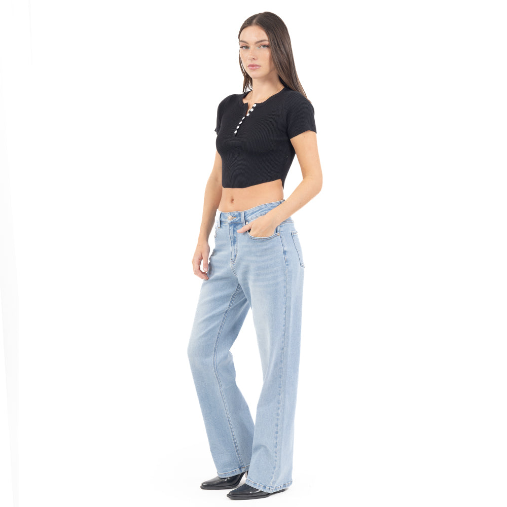 JEANS WIDE LEG CON PIERNA AMPLIA Y 5 BOLSILLOS