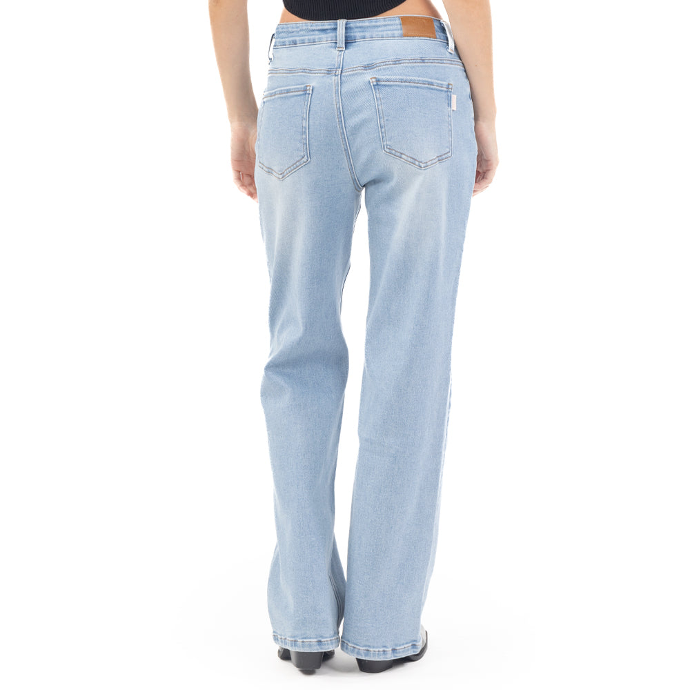 La mezclilla comfort con stretch hace que el wide leg se sienta mejor puesto; mantiene la forma amplia, pero con más comodidad al moverte durante el día.