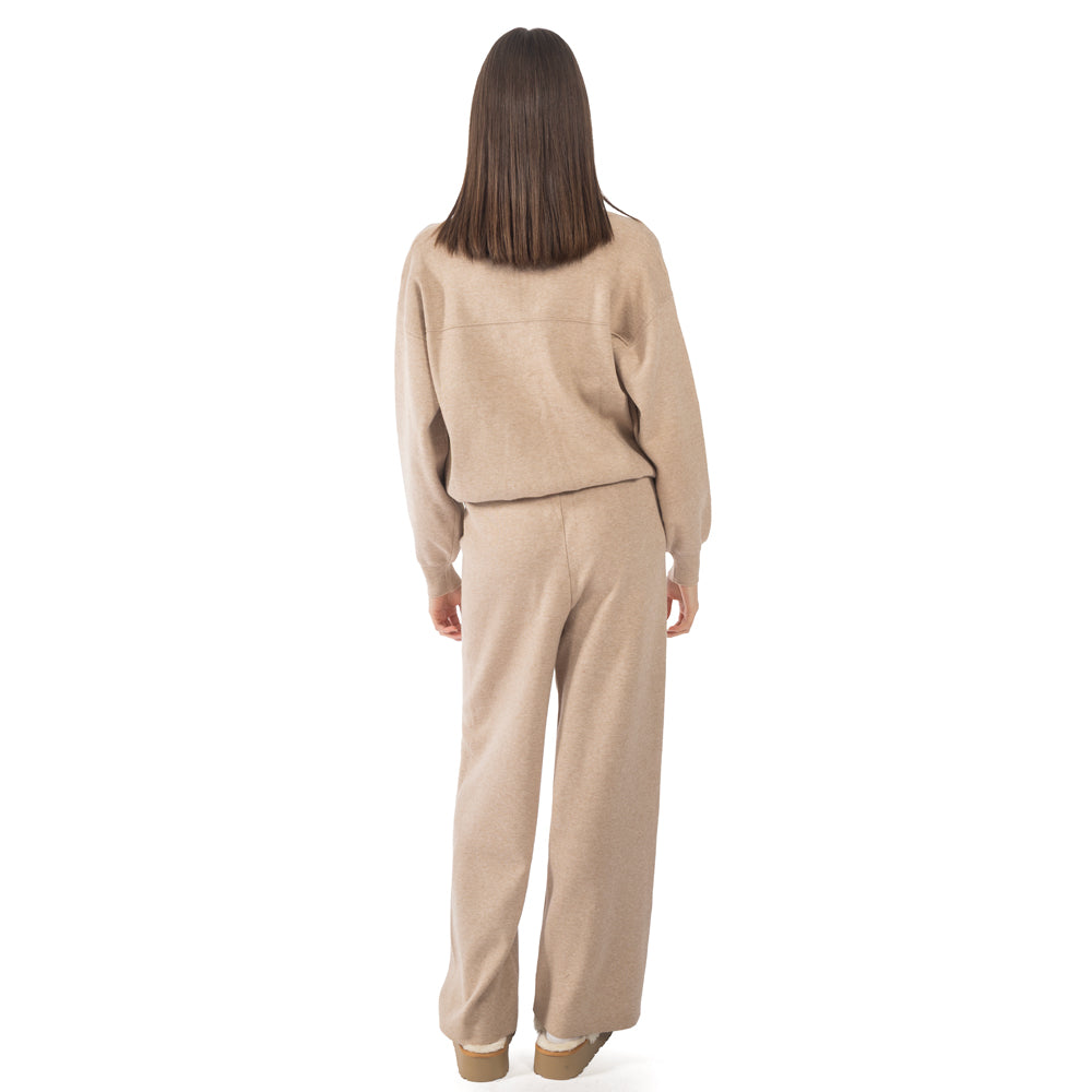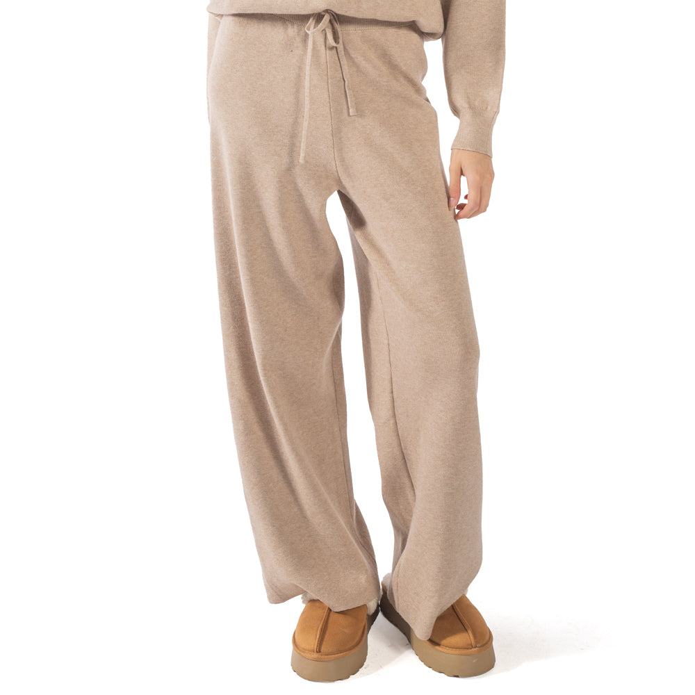 Pantalón liso con jareta en cintura, pierna suelta desde la cadera hasta el dobladillo.
