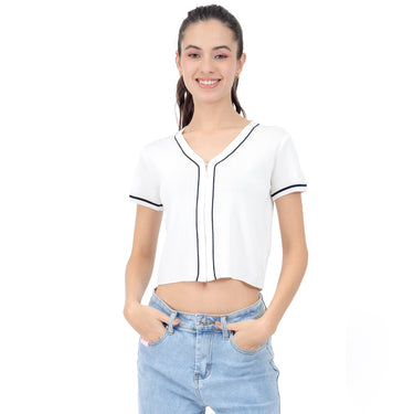 PLAYERA CORTA CON CIERRE Y CONTRASTE PARA MUJER QUARRY